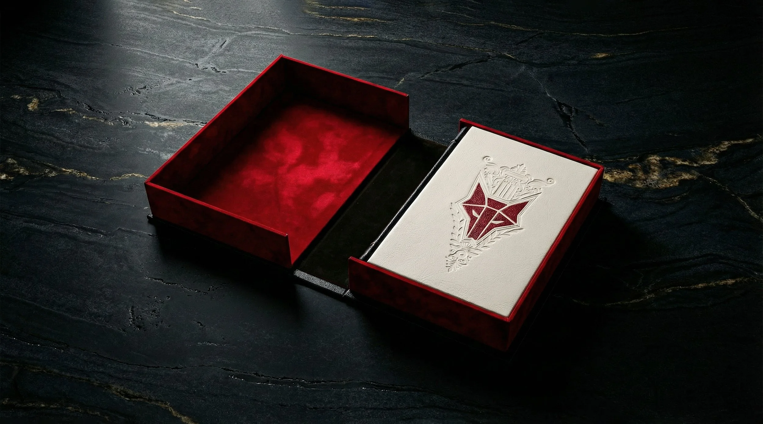 Letterpress printed on handmade paper, fully leatherbound and housed in a custom Roman-inspired enclosure. Includes exclusive remarques by Marc Simonetti and Joel Daniel Phillips. Signing and numerals by author and artists.